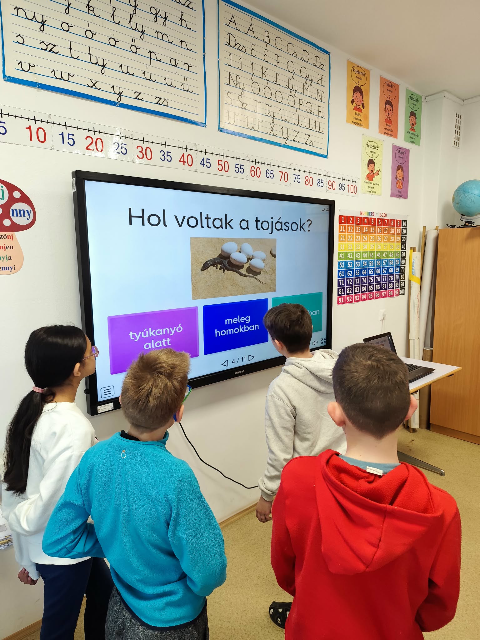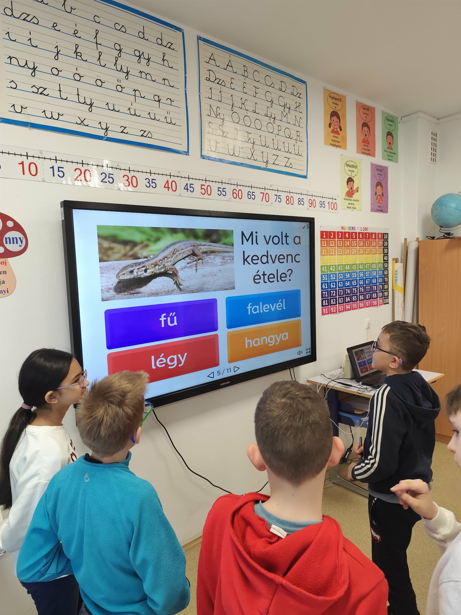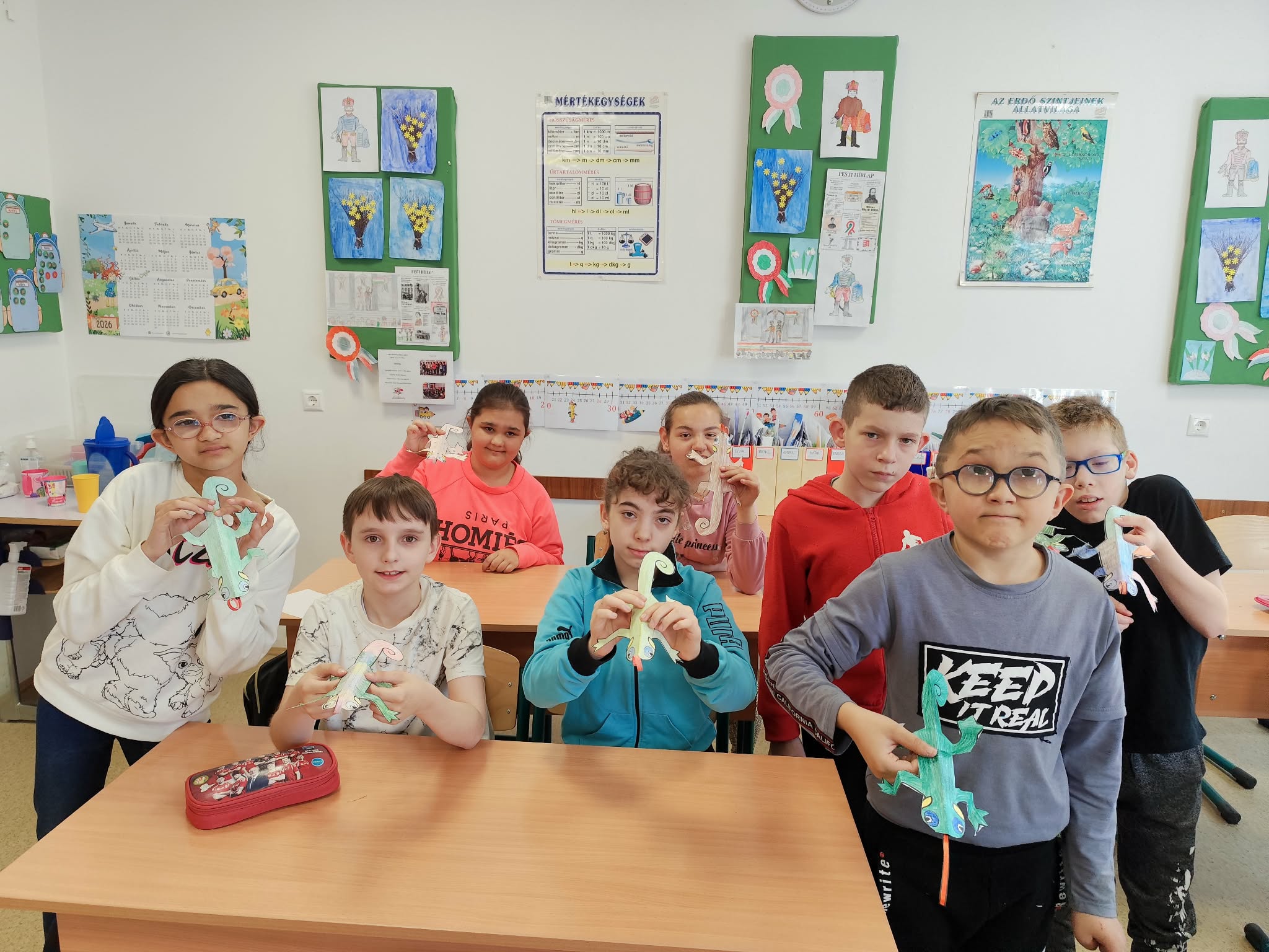 Iskolánk az idei évben is csatlakozott az ország legnagyobb digitális pedagógiai rendezvényéhez, a Digitális Témahéthez. A program elsődleges célja a tanulók digitális kompetenciáinak fejlesztése, valamint a tantervi követelmények megvalósítása a technológia tudatos és hatékony alkalmazásával. Emellett kiemelt szerepet kap a digitális pedagógia elterjesztése és gyakorlati alkalmazásának elmélyítése, annak érdekében, hogy a digitális készségek fejlesztése minden tantárgyban megjelenjen. Fontos cél továbbá, hogy a pedagógusok olyan tanulási folyamatokat tervezzenek és valósítsanak meg, amelyek a biztonságos, kreatív és alkotó digitális eszközhasználatra épülnek. Az alsó tagozatos tanulók ebben a tanévben a fürge gyíkkal ismerkedtek meg különböző digitális eszközök és alkalmazások segítségével. A diákok tableteken, laptopokon, asztali számítógépeken és interaktív táblákon végezték el a napi feladatokat. Többek között online kirakókat raktak ki, szókeresőket oldottak meg, valamint kvízeket és igaz-hamis feladatokat teljesítettek a digitális térben. A kisebbek számára is számos játékos feladat állt rendelkezésre: memóriajátékokkal és kép-árnyék párosító feladatokkal fejlesztették készségeiket. A digitális tevékenységek mellett kézműves foglalkozások is színesítették a programot. A hét egyik legnagyobb élményét a robotméhecske, a Bee-Bot megismerése jelentette, amely minden alsós osztályba ellátogatott, és izgalmas feladatok megoldására ösztönözte a gyerekeket. A felső tagozatos és szakiskolai tanulók a digitalistemahet.hu oldalon elérhető tananyagok feldolgozásával vettek részt a programban. Számos témakör közül választhattak, például az internetbiztonság, a mesterséges intelligencia alapjai, a digitális tartalomkészítés vagy az online adatvédelem területéről.